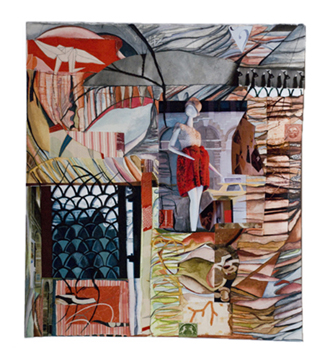 New York Landscape - 18 x 16 inches - Photography, found images, fabric, watercolor, gouache and graphite on paper. 2006